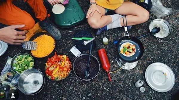 Cooking during a camping trip