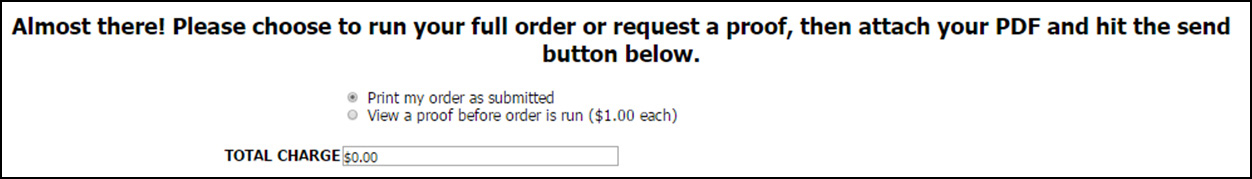 - Your files will be printed as-is on the available equipment. Please check the box at the bottom of the form to request proof if you are concerned about how your order will look.