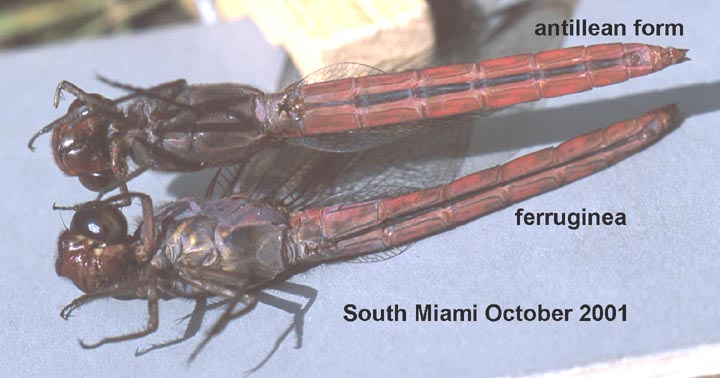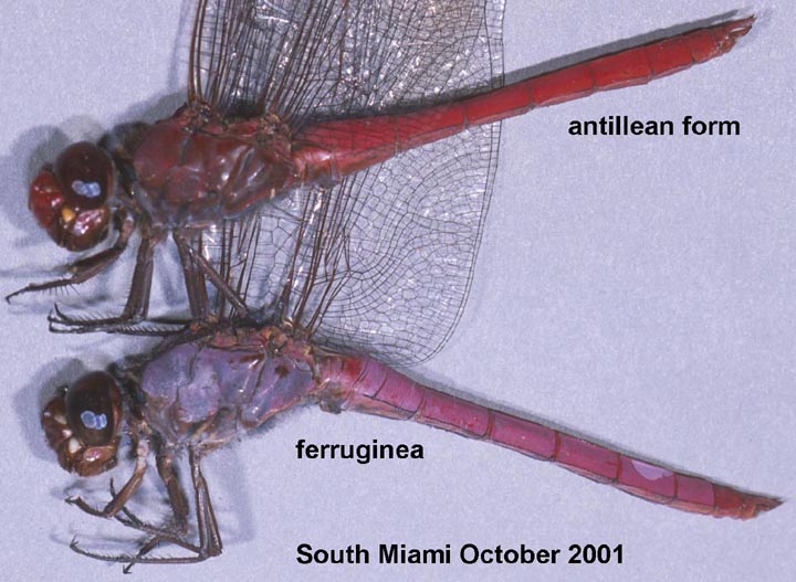 This page displays photos of Orthemis from the New World Tropics. Orthemis is a difficult genus of Libellulidae in which several species have long been confused with the first-named species O. ferruginea. Recent study has shown that what was thought to be a very widespread species is actually at least 5 species, as follows.