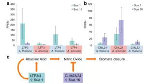 Carlson, KD, Fernandez-Pozo, N, Bombarely, A, Pisupati, R, Mueller, LM, and Madlung, A: Natural variation in stress response gene activity in the allopolyploid Arabidopsis suecica (2017) BMC Genomics 18:653 (Full text) In this paper we describe how differentially expressed homoeologous genes in two different accessions of an allopolyploid lead to variation in transpiration and stomatal regulation, suggesting allopolyploidy as a mechanism in differential environmental adaptation. |