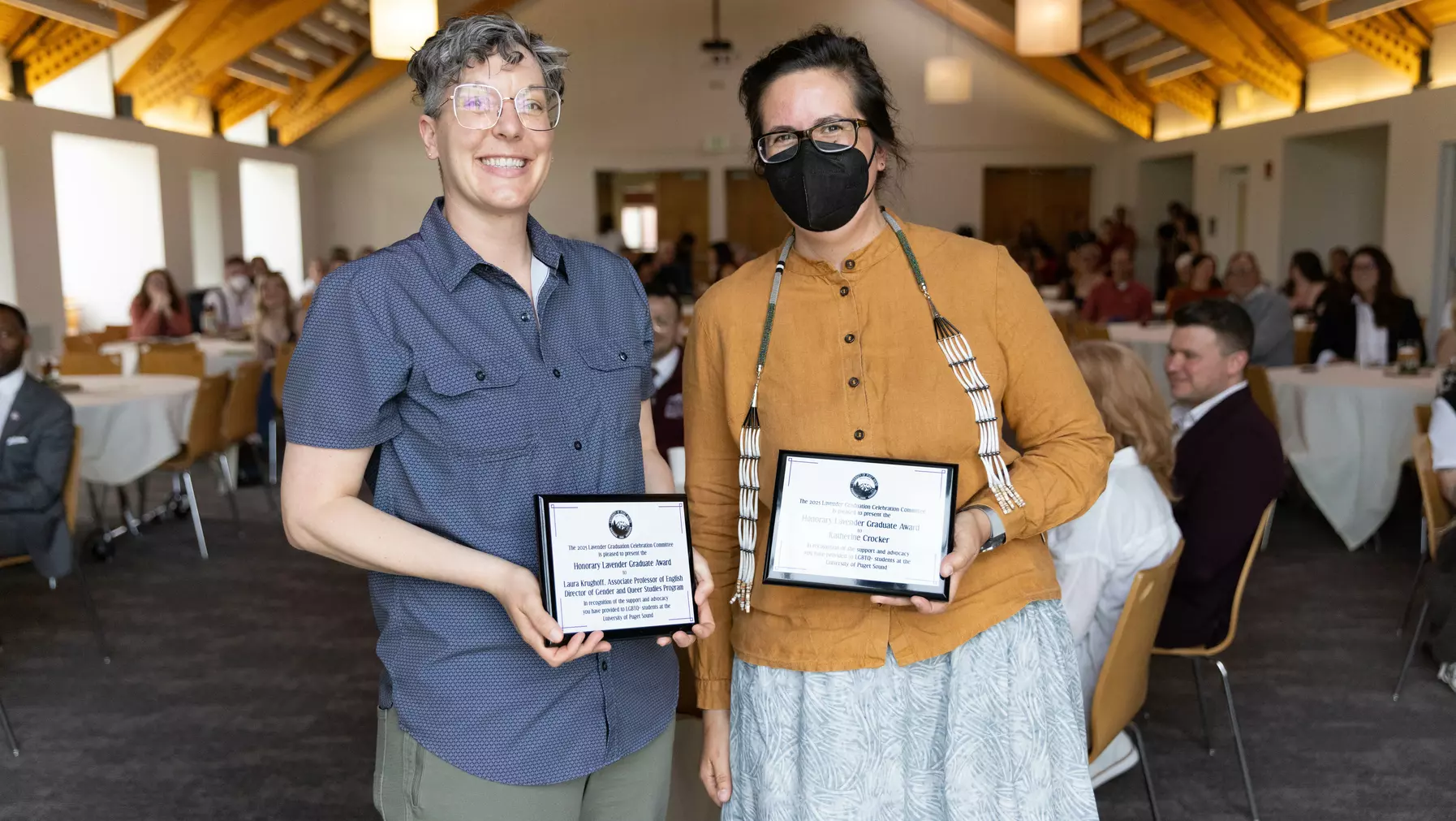 The annual Lavender Graduates Celebration has become an enriching part of campus life at Puget Sound. The Lavender Graduates Celebration is a time to recognize and applaud the unique challenges and successes of our LGBTQ+ students (lesbian, gay, bisexual, transgender, non-binary, queer and beyond). Traditionally, the celebration honors graduating students and honorary LavGrads who are faculty, staff, or administrators who are chosen to be recognized as advocates of the LGBTQ+ community.