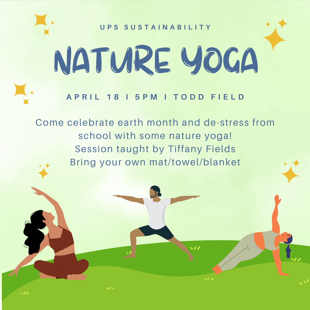 Come join us for yoga on April 18 at 5 p.m. for yoga on Todd Field! It is completely free and a good de-stressor! The session will taught by Tiffany Fields. Please bring your own towel, mat, or blanket. In case of bad weather, the session will be held in Thomas 270.
