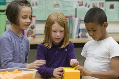 Photos on page: Top right: Master of Arts in Teaching student works with students from a local junior high school; Above left: Three children at one of the local schools where Puget Sound trains student teachers.