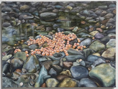 Photos on page: From top right: Commuting, by Morgan Travieso; Salmon Roe I, by Maggie Langford; Rummy Painting, part of the series Two Diptychs of Statues, by Olivia Sherman