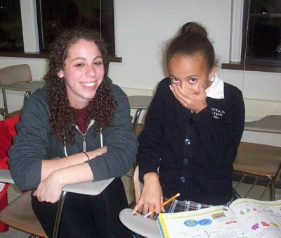 Photos on page: Top right. Freshmen help out at the L'Arche Farm during orientation; Above left: Student offers tutoring help through the Community Involvement and Action Center.