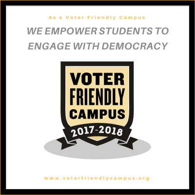 The Voter Friendly Campus designation, valid through December 2018, was created to bolster college and university efforts to help students overcome barriers to participating in the political process. The designated institutions represent a wide range of two-year, four-year, public, private, rural, and urban campuses, with nearly 1.4 million students.