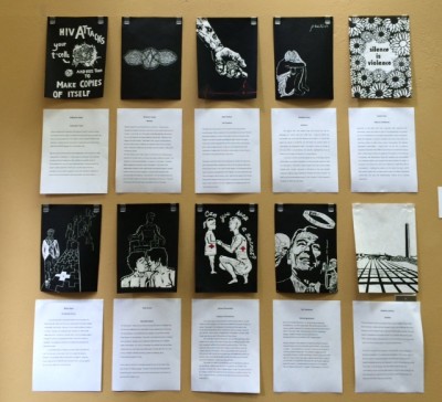 The special Puget Sound exhibit will include artwork made by volunteers, staff, and advocates of the Pierce County AIDS Foundation (PCAF), partnered with Collins Library. It will also include Puget Sound art students' works, who led a workshop at the Tacoma Art Museum and designed a series of woodblocks that reflect HIV and its effects on individuals and communities.