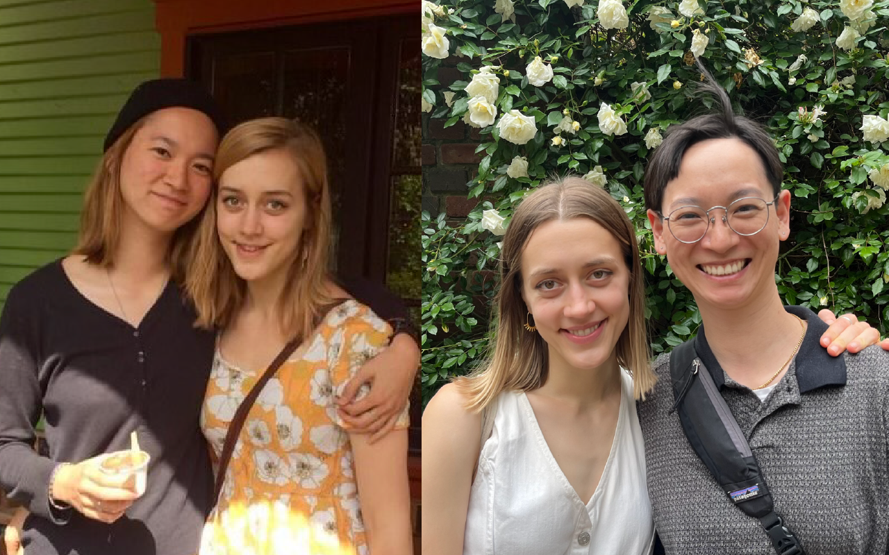 Bella and Allison met in Diversions Cafe in the fall of 2013, when Bella was a sophomore and Allison was a freshman. A couple of months later, they returned to Diversions for one of their first dates. They talked for hours, and when the cafe closed, they moved to the SUB to continue the conversation. During their time at Puget Sound, they explored Tacoma together, with favorite locations including Mandolin, Point Defiance, Rosewood Cafe, Shakabrah, and Dash Point. When Allison studied abroad through the Pacific Rim program, Bella visited her in Hong Kong. There, they were able to spend time with Bella’s Hong Kong relatives. The two moved to Portland together after Allison returned to the U.S. and graduated from Puget Sound. On New Year’s Eve of 2020, Bella took Allison on a trip to Tacoma and proposed on the Diversions patio. In July of 2023, Allison and Bella married in Portland, with many fellow alums in attendance.