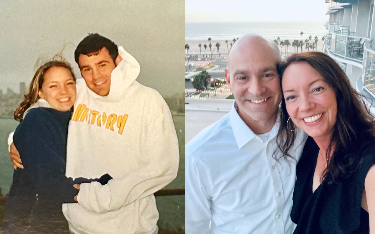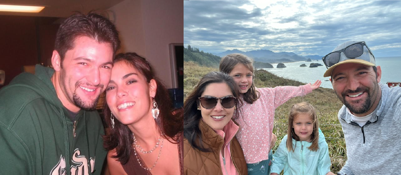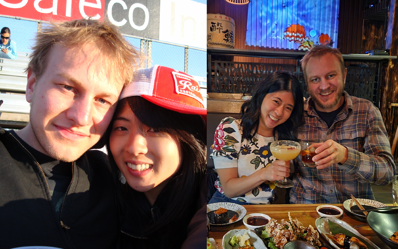 Tim and I met through a mutual friend—Jack Nakagawa ’12—after orientation, hanging out a few times first year just as friends. Sophomore year, we happened to move into the same off-campus house again through our friend, Jack. Between sharing walks to and from the SUB, spending time at the Cellar where he worked, and late-night finals studying, we started dating. Our story really took off from there! We took classes together, performed together in Luau activities, and graduated as business majors. Fast forward 15 years, we’ve been married for eight and are now living in Austin, Texas, with our four cats!