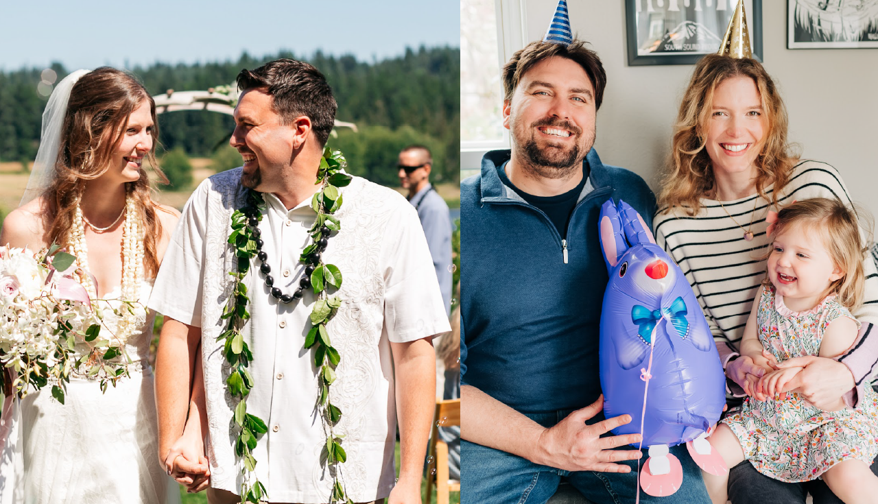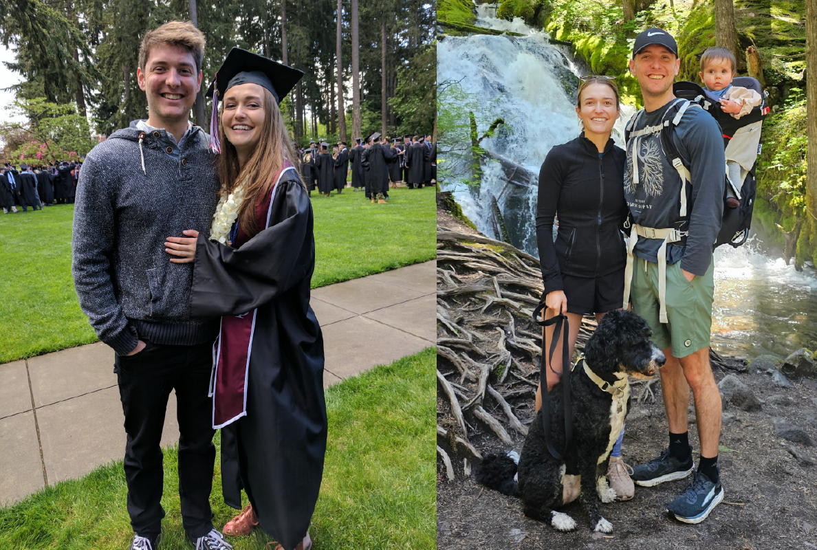 My now husband and I met in 2013 but fell in love in 2015, kindling our romance at the now-defunct bar, Masa. Our courtship took us all over campus—highlights include sitting under and admiring the Chihuly installation in Wyatt, my stomping grounds as an English major, and perusing the books in the physics library in Thompson, Ross’s regular spot. Pi Beta Phi and Phi Delta Theta formal events, and “studying” for hours in the basement study rooms in Collins, where we shared our hopes and dreams for the future, our favorite baby names (Sloane for a girl, from Ferris Bueller), and procrastinated over our attempts to win Oregon Trail. Duke of Earl lattes in Diversions (and the occasional stop in Oppenheimer to assuage Ross’s insistence that it was superior). Watching Ross at track meets, and attending each other’s graduation ceremonies, bringing our families together. We only find it fitting that Puget Sound is forever embedded in our professional careers as well. Ross was first recruited to the HR software company, Workday, at the Puget Sound Career Fair in 2016. I followed suit, joining Workday’s Student platform in 2020. The University of Puget Sound continues to shape our lives for the better, and we often reflect on our time fondly. We owe so much to Puget Sound, and plan to take our 11-month-old daughter Sloane one day to visit Mom and Dad’s stomping grounds.