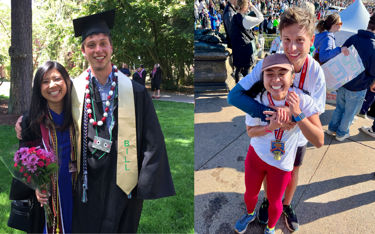 Senior year, my friends loved to tease me about my “run dates.” I had a habit of inviting cute guys on runs—some tried to race me, one poor soul threw up after the 30th Street hill, and others could barely wheeze out a sentence. Needless to say, none of them were “the one.” Then, I met Charlie. We started running from Thompson Hall, weaving our way through Tacoma’s North End and down to Ruston Waterfront through Puget Park. Our pace in perfect sync, but what I loved most was our conversation—nonstop and easy. By the end of that run, I knew everything from his childhood memories to his wildest dreams. I was intrigued, to say the least. Before long, those runs turned into senior formal dates, and soon enough, into something more. Our whirlwind “honeymoon phase” of senior year kept us on our toes, right up until graduation, when reality set in and the looming question of “what’s next?” hung over us like the ultimate finish line. Fast forward to 2023. After 18-weeks of marathon training, Charlie and I crossed the finish line of the Philadelphia Marathon, side by side again. It was our second marathon together, and the moment was pure joy, even with sore legs. But just when I thought the runner’s high was fading, Charlie, wobbling a little from all the miles, got down on one knee and asked me to run through life with him. From running buddies to life partners, it all began at Puget Sound.